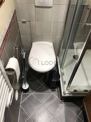 Questo appartamento é equipaggiato di un bagno piacevole with finestras anti-rumore. Questo bagno é dotato di tutto il necessario per il tuo benessere quotidiano : scaffale, armadio, doccia, asciugacapelli, sink, bin, radiatore porta asciugamani, carpet, ventilator. Il WC é integrato nel bagno