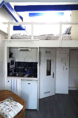 Grazie a una bella altezza del soffitto, si é potuto magnifica montare un soppalco in questo appartamento , offrendoti cosi un locale supplementare dotata de televisione, armadio.