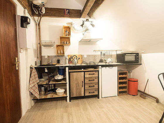 Questo appartamento dispone di una magnifica cucina con del parquet al suolo e tutto l'equipaggiamento necessario per la vita quotidiana : piani di cottura, frigorifero, forno, microonde multifunzione, congelatore, tavola da pranzo, scaffale, 2 sedia (e).
