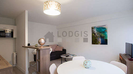 Questo appartamento é composto di un magnifico salone con del linoleum al suolo vista su strada. Questo salone é ammobiliato e equipaggiato per rendere il tuo soggiorno piacevole : televisione, lenzuola, coperte, tavola da pranzo, tavolino, 4 sedia (e), sgabello1 divano letto.