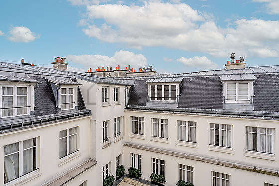 Appartement meublé à Paris d'environ 30m2, situé dans le 1er arrondissement de Paris - quartier Vendome, St Honoré, Louvre, Rivoli, dans un immeuble parisien de standing avec gardien, au 7ème étage, avec ascenseur.