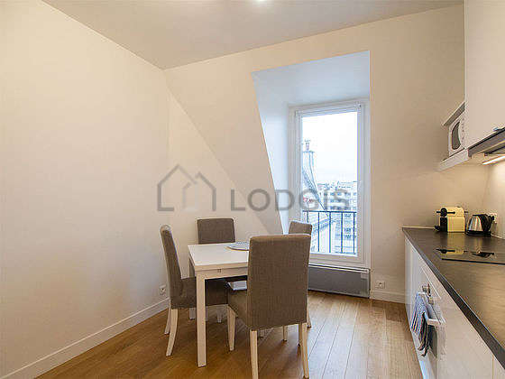 Questo appartamento dispone di una magnifica cucina con del parquet al suolo e tutto l'equipaggiamento essenziale per la vita quotidiana : piani di cottura, frigorifero, forno, forno microonde, congelatore, cappa di aspirazione, bollitore elettrico, caffettiera, tavola da pranzo, armadio, stoviglie, 4 sedia (e).