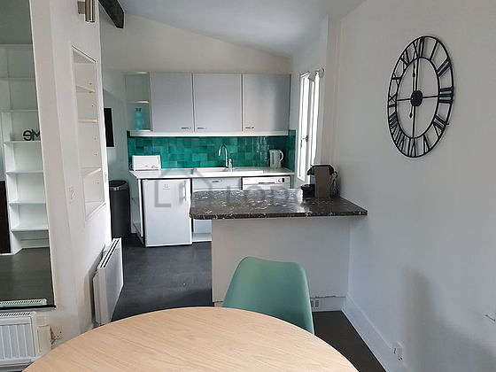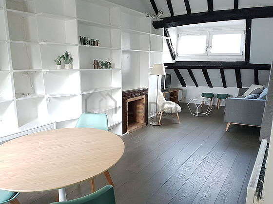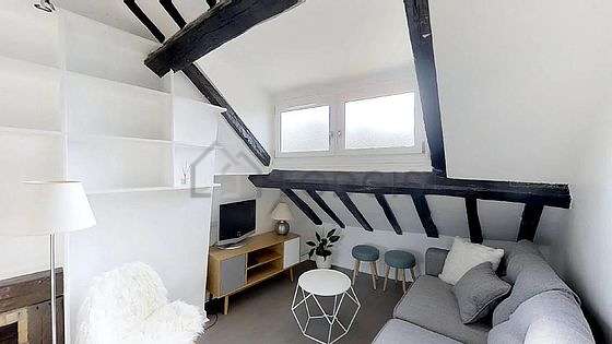 SoggiornoQuesto appartamento é composto di un magnifico salone con del parquet al suolo e delle finestras anti-rumore. Questo salone calmo é ammobiliato e equipaggiato per rendere il tuo soggiorno piacevole : televisione, divano, 1 poltrona (e), tavola da pranzo, tavolino, biblioteca, scaffale, 1 sedia (e), sgabello, bar, floor lamp, tv stand, mirror, painting, vase.