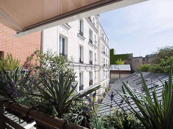 TerrazzoCon del piastrelle al suolo la terrazza di questo appartamento ti delizierà. Questo spazio esterno molto calmo e molto luminoso e fornito di tavola da pranzo, 2 sedia (e) sarà un vero "plus"per tuo soggiorno a Parigi, soprattutto durante le belle giornate.