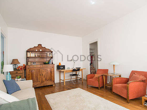 SoggiornoQuesto appartamento é composto di un bello salone con del parquet al suolo e delle finestras. Questo salone molto calmo é ammobiliato e equipaggiato per rendere il tuo soggiorno piacevole : televisione, lenzuola, coperte, divano, 2 poltrona (e), tavola da pranzo, scrivania, credenza, 5 sedia (e), comodino, floor lamp, lamp, carpet.