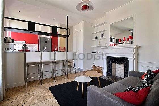 Questo appartamento é composto di un magnifico salone con del parquet al suolo e delle finestras anti-rumore. Questo salone molto calmo é ammobiliato e equipaggiato per rendere il tuo soggiorno piacevole : divano, scaffale, camino, painting, set of tables, carpet.