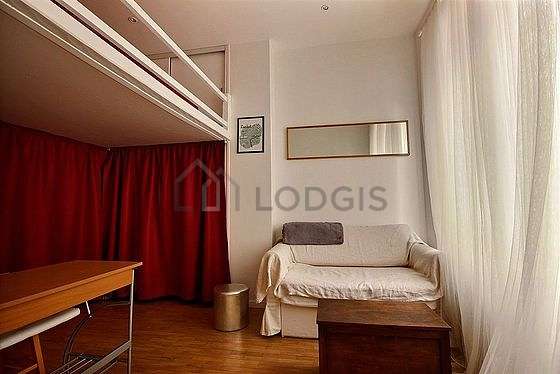 SoggiornoQuesto appartamento é composto di un attraente salone con del parquet al suolo e delle finestras. Questo salone molto calmo é ammobiliato e equipaggiato per rendere il tuo soggiorno piacevole : divano, tavolino, scrivania, guardaroba, scaffale, armadio, 1 sedia (e), comodino, mirror, painting1 letto mezzanino.