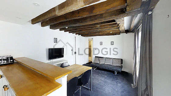 Questo appartamento é composto di un attraente salone con della moquette al suolo vista su cortile. Questo salone molto calmo é ammobiliato e equipaggiato per rendere il tuo soggiorno piacevole : televisione, divano, tavola da pranzo, trave, 4 sedia (e).