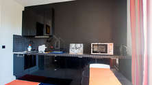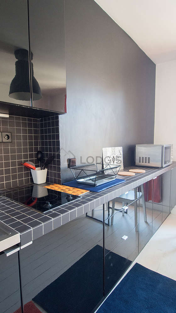 Questo appartamento dispone di una magnifica cucina con del piastrelle al suolo e tutto l'equipaggiamento indispensabile per la vita quotidiana : piani di cottura, frigorifero, forno microonde, congelatore, bollitore elettrico, caffettiera, armadio, stoviglie.