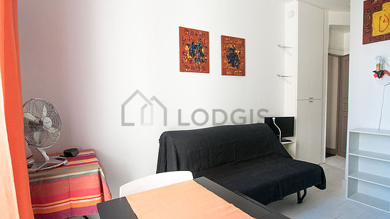 SoggiornoQuesto appartamento é composto di un magnifico salone con del parquet al suolo vista su strada. Questo salone calmo é ammobiliato e equipaggiato per rendere il tuo soggiorno piacevole : televisione, lenzuola, coperte, divano, tavola da pranzo, scrivania, scaffale, armadio, armadio, 2 sedia (e)1 divano letto.