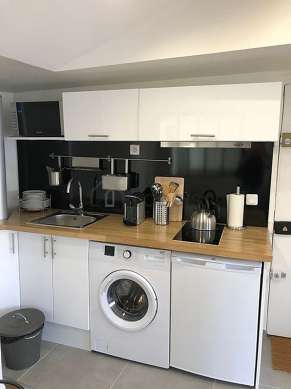 Questo appartamento dispone di una magnifica cucina con del parquet al suolo e tutto l'equipaggiamento necessario per la vita quotidiana : piani di cottura, frigorifero, forno microonde, congelatore, cappa di aspirazione, bollitore elettrico, caffettiera, tavola da pranzo, armadio, stoviglie, 4 sedia (e).