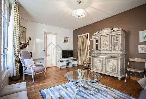 SoggiornoQuesto appartamento é composto di un piacevole salone con del parquet al suolo e delle finestras. Questo salone calmo é ammobiliato e equipaggiato per rendere il tuo soggiorno piacevole : televisione, lenzuola, coperte, divano, credenza, 1 sedia (e).