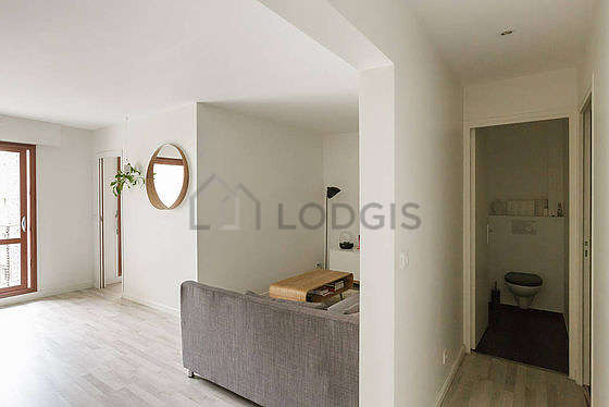 Questo appartamento é composto di un superbo salone con del parquet al suolo e delle finestras anti-rumore. Questo salone molto calmo é ammobiliato e equipaggiato per rendere il tuo soggiorno piacevole : televisione, divano, 1 poltrona (e), 1 sedia (e), bar, tv stand, mirror, carpet, vase.