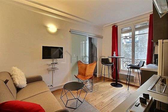 Questo appartamento é composto di un bello salone con del parquet al suolo e delle finestras anti-rumore. Questo salone molto calmo é ammobiliato e equipaggiato per rendere il tuo soggiorno piacevole : televisione, divano, 1 poltrona (e), tavola da pranzo, sgabello, carpet.