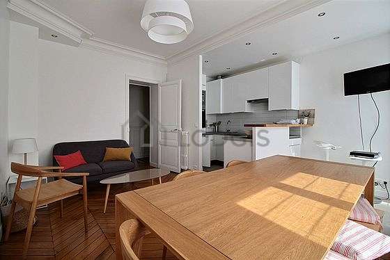 Questo appartamento é composto di un superbo salone con del parquet al suolo e delle finestras. Questo salone molto calmo é ammobiliato e equipaggiato per rendere il tuo soggiorno piacevole : televisione, divano, tavola da pranzo, 1 sedia (e).