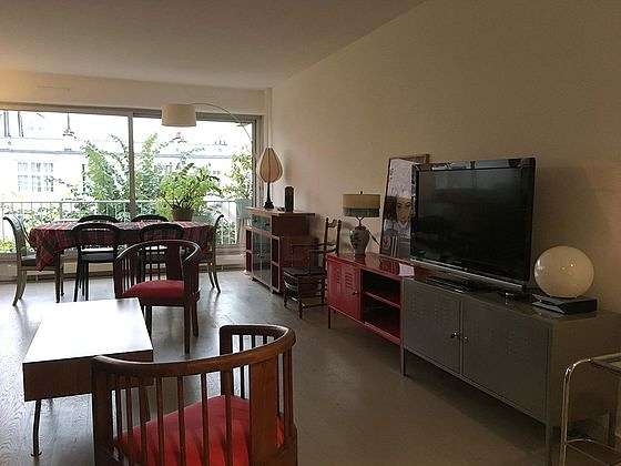 Questo appartamento é composto di un bello salone con del parquet al suolo vista su giardino. Questo salone molto calmo é ammobiliato e equipaggiato per rendere il tuo soggiorno piacevole : televisione, divano, 1 poltrona (e), tavola da pranzo, guardaroba, armadio, credenza, stoviglie, 1 sedia (e), floor lamp, tv stand, mirror, vase.