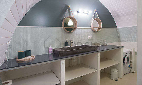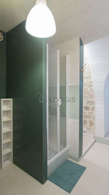 Questo appartamento é composto di un superbo salone con del piastrelle al suolo vista su cortile. Questo salone calmo é ammobiliato e equipaggiato per rendere il tuo soggiorno piacevole : televisione, tavolino, pietre visibili, trave, comodino, tv stand, pouffe.