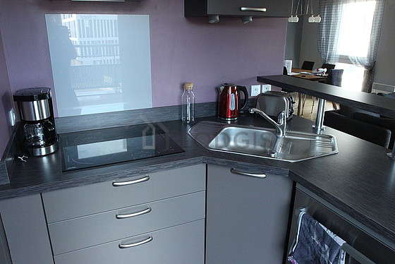 Questo appartamento dispone di una magnifica cucina con del piastrelle al suolo e tutto l'equipaggiamento necessario per la vita quotidiana : piani di cottura, frigorifero, congelatore, forno, forno microonde, congelatore, cappa di aspirazione, tostapane, caffettiera, armadio, stoviglie, bin.