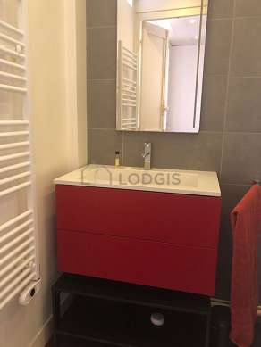 Questo appartamento é equipaggiato di un bagno piacevole e chiaro with finestras anti-rumore. Questo bagno é dotato di tutto il necessario per il tuo benessere quotidiano : asciugamani da bagno, scaffale, armadio, doccia, sink, radiatore porta asciugamani. Il WC é separato dal bagno ed é situato in un locale indipendente.