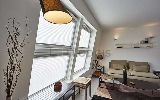 Questo duplex é composto di un magnifico salone con del piastrelle al suolo e delle finestras anti-rumore. Questo salone molto calmo é ammobiliato e equipaggiato per rendere il tuo soggiorno piacevole : televisione, divano, tavola da pranzo, scrivania, sgabello.