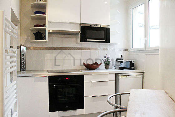 Questo appartamento dispone di una magnifica cucina con del piastrelle al suolo e tutto l'equipaggiamento indispensabile per la vita quotidiana : piani di cottura, frigorifero, forno, forno microonde, congelatore, tostapane, caffettiera, tavola da pranzo, scaffale, armadio, stoviglie, 1 sedia (e), bin, radiatore porta asciugamani.