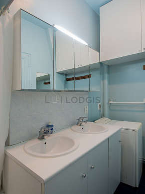 Questo appartamento é equipaggiato di un bagno piacevole. Questo bagno é dotato di tutto il necessario per il tuo benessere quotidiano : scaffale, armadio, vasca da bagno, sink. Il WC é separato dal bagno ed é situato in un locale indipendente.
