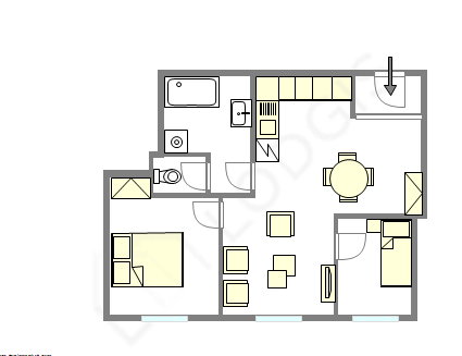 Questo appartamento é equipaggiato di un bagno magnifica. Questo bagno é dotato di tutto il necessario per il tuo benessere quotidiano : scaffale, armadio, doccia, sink. Il WC é separato dal bagno ed é situato in un locale indipendente.