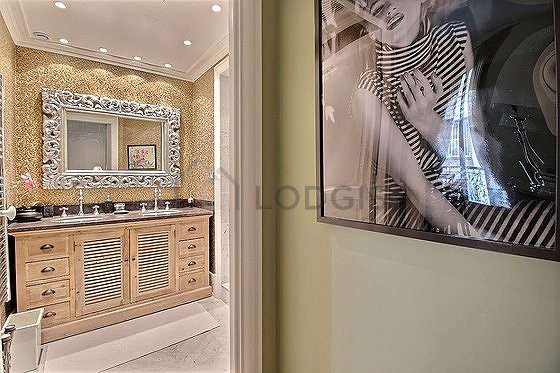 Questo appartamento é equipaggiato di un bagno magnifica. Questo bagno é dotato di tutto il necessario per il tuo benessere quotidiano : asciugamani da bagno, vasca da bagno, asciugacapelli, sink. Il WC é integrato nel bagno