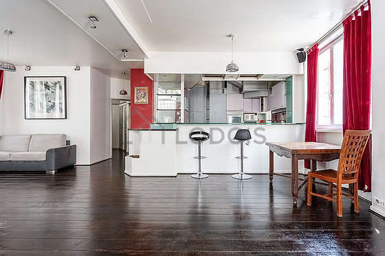 Per condividere un pasto conviviale durante il tuo soggiorno a Parigi, this duplex dispone di una sala da pranzo grazie a tavola da pranzo, 1 sedia (e), sgabello, mirror.