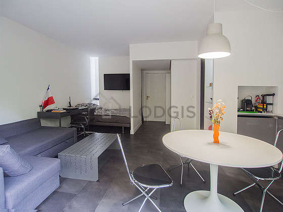 TerrazzoCon del piastrelle al suolo la terrazza di questo appartamento ti incanterà. Questo spazio esterno molto calmo e molto luminoso e fornito di tavola da pranzo, 1 sedia (e) ti permetterà di approfittare pienamente del tuo soggiorno a Parigi, soprattutto durante le belle giornate.