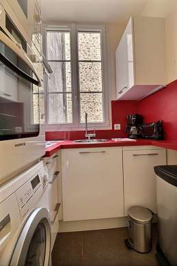 Questo appartamento dispone di una magnifica cucina con del piastrelle al suolo e tutto l'equipaggiamento indispensabile per la vita quotidiana : piani di cottura, frigorifero, forno, forno microonde, tostapane, scaffale, armadio, stoviglie.