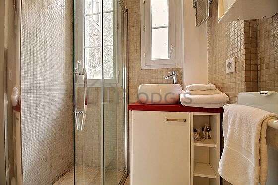 Questo appartamento é equipaggiato di un bagno magnifica e chiaro. Questo bagno é dotato di tutto il necessario per il tuo benessere quotidiano : armadio, doccia, asciugacapelli, sink. Il WC é separato dal bagno ed é situato in un locale indipendente.