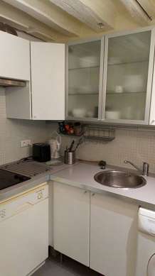 Questo appartamento dispone di una bella cucina e tutto l'equipaggiamento essenziale per la vita quotidiana : piani di cottura, frigorifero, cappa di aspirazione, tostapane, bollitore elettrico, caffettiera, scaffale, armadio, stoviglie.