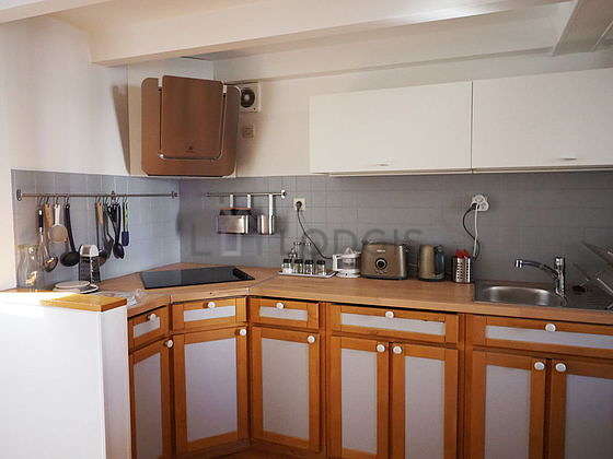 Questo appartamento dispone di una magnifica cucina con del parquet al suolo e tutto l'equipaggiamento necessario per la vita quotidiana : piani di cottura, frigorifero, forno, forno microonde, cappa di aspirazione, tostapane, caffettiera, tavola da pranzo, stoviglie, 1 sedia (e), bar.