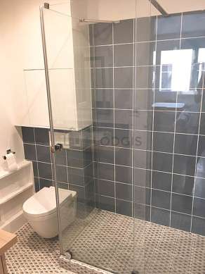 Questo appartamento é equipaggiato di un bagno magnifica e molto chiaro. Questo bagno é dotato di tutto il necessario per il tuo benessere quotidiano : asciugamani da bagno, scaffale, armadio, doccia, sink, mirror, bin, radiatore porta asciugamani, ventilator. Il WC é separato dal bagno ed é situato in un locale indipendente.