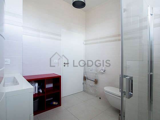 Questo appartamento é equipaggiato di un bagno magnifica e chiaro. Questo bagno é dotato di tutto il necessario per il tuo benessere quotidiano : scaffale, armadio, doccia, sink, radiatore porta asciugamani. Il WC é integrato nel bagno