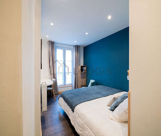 Con del parquet al suolo e delle finestras anti-rumore e vista su cortile, questa camera splendida offre l'equipaggiamento necessario per riposarti durante il tuo soggiorno : coperte, scrivania, guardaroba, scaffale, armadio, 1 sedia (e), sgabello1 letto.