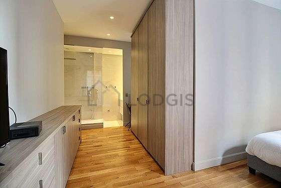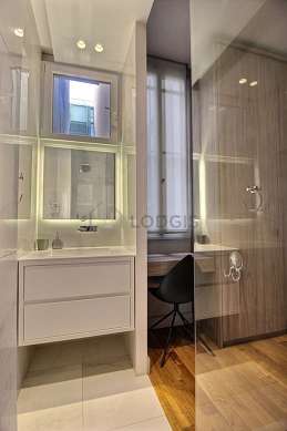 Questo appartamento é equipaggiato di un bagno magnifica. Questo bagno é dotato di tutto il necessario per il tuo benessere quotidiano : asciugamani da bagno, scaffale, armadio, doccia, sink. Il WC é integrato nel bagno