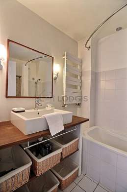 Questo appartamento é equipaggiato di un bagno magnifica. Questo bagno é dotato di tutto il necessario per il tuo benessere quotidiano : asciugamani da bagno, scaffale, armadio, vasca da bagno, sink. Il WC é separato dal bagno ed é situato in un locale indipendente.