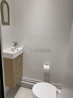 Questo appartamento é equipaggiato di un bagno magnifica e chiaro. Questo bagno é dotato di tutto il necessario per il tuo benessere quotidiano : scaffale, doccia, sink. Il WC é separato dal bagno ed é situato in un locale indipendente.