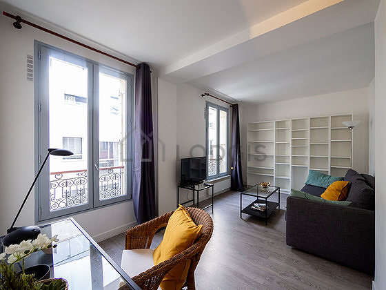 Questo appartamento é composto di un attraente salone con del parquet al suolo vista su strada. Questo salone calmo é ammobiliato e equipaggiato per rendere il tuo soggiorno piacevole : televisione, divano, scrivania, biblioteca, 1 sedia (e), tv stand1 divano letto.