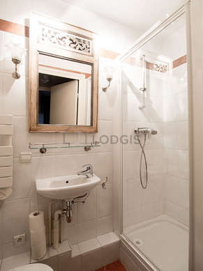 Questo appartamento é equipaggiato di un bagno magnifica. Questo bagno é dotato di tutto il necessario per il tuo benessere quotidiano : scaffale, armadio, vasca da bagno, sink, mirror. Il WC é integrato nel bagno
