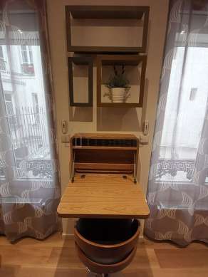 SoggiornoQuesto appartamento é composto di un bello salone delle finestras anti-rumore e vista su cortile. Questo salone molto calmo é ammobiliato e equipaggiato per rendere il tuo soggiorno piacevole : televisione, lenzuola, coperte, divano, tavola da pranzo, scrivania, guardaroba, scaffale, armadio, 1 sedia (e), airer, mirror1 divano letto, 1 letto.