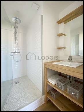 Questo duplex é equipaggiato di un bagno magnifica e chiaro with finestras. Questo bagno é dotato di tutto il necessario per il tuo benessere quotidiano : asciugamani da bagno, scaffale, doccia, sink, mirror, radiatore porta asciugamani, ventilator. Il WC é integrato nel bagno