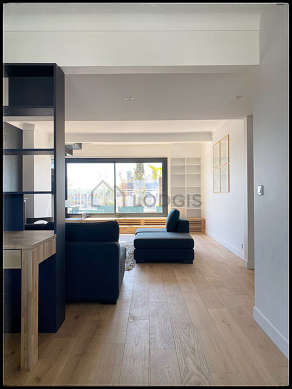 Questo duplex é composto di un magnifico salone con del parquet al suolo e delle finestras anti-rumore con balcon. Questo salone molto calmo é ammobiliato e equipaggiato per rendere il tuo soggiorno piacevole : televisione, divano, 2 poltrona (e), scrivania, biblioteca, scaffale, camino, 1 sedia (e), entry way table, floor lamp, pouffe, painting, set of tables, carpet, vase.