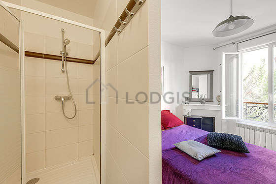 Con del parquet al suolo e delle finestras anti-rumore questa camera splendida offre l'equipaggiamento necessario per riposarti durante il tuo soggiorno : lenzuola, coperte, como', comodino, mirror, pouffe, carpet1 letto.