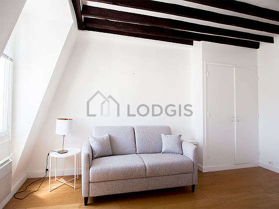 Questo appartamento é composto di un superbo salone con del parquet al suolo e delle finestras. Questo salone molto calmo é ammobiliato e equipaggiato per rendere il tuo soggiorno piacevole : tavola da pranzo, trave, 3 sedia (e)1 divano letto.