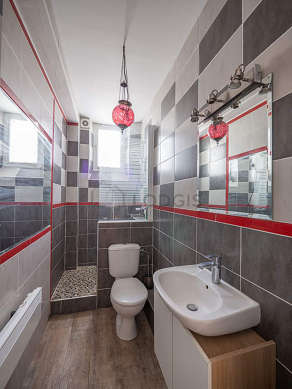 Questo appartamento é equipaggiato di un bagno piacevole e chiaro. Questo bagno é dotato di tutto il necessario per il tuo benessere quotidiano : armadio, doccia, sink. Il WC é integrato nel bagno