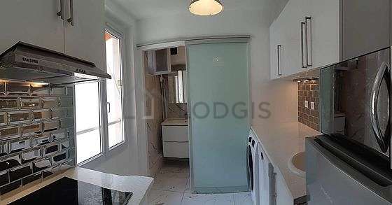 Questo appartamento dispone di una cucina con del marmo al suolo e tutto l'equipaggiamento necessario per la vita quotidiana : piani di cottura, frigorifero, congelatore, forno, forno microonde, microonde multifunzione, congelatore, tostapane, tavola da pranzo, guardaroba, scaffale, armadio, como', armadio, stoviglie, 1 sedia (e).