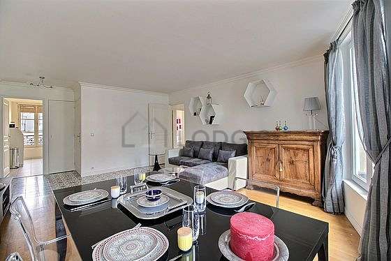 SoggiornoQuesto appartamento é composto di un bello salone con del parquet al suolo e delle finestras. Questo salone molto calmo é ammobiliato e equipaggiato per rendere il tuo soggiorno piacevole : televisione, divano, 1 poltrona (e), tavola da pranzo, scaffale, 1 sedia (e).